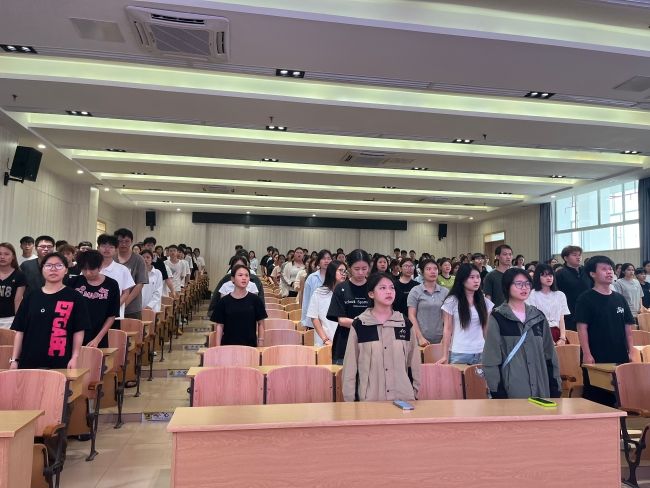 宣读完毕后,全体师生起立,齐唱中华人民共和国国歌。雄壮激昂的歌声响彻现场,激荡起浓厚的爱国情怀;庄严隆重的仪式,进一步强化了青年学子的使命担当。活动将思政引领、价值塑造与实践育人有机融合,有效引导广大青年学子坚定理想信念,自觉扛起维护国家安全的时代责任。