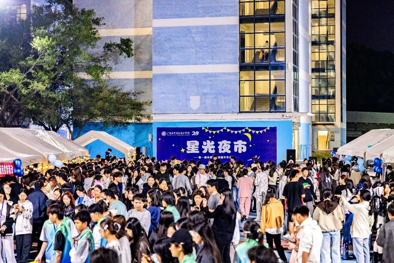 本届体育节创新推出 “星光夜市” 夜间嘉年华活动,延续了白日赛场的激情与热度。美食补给暖心暖胃,社团互动趣味十足,文艺表演精彩纷呈,各类活动吸引了大批师生参与,人潮涌动、热闹非凡。星光下的校园被活力与欢乐笼罩,成为师生们放松身心、增进情谊的温馨平台。