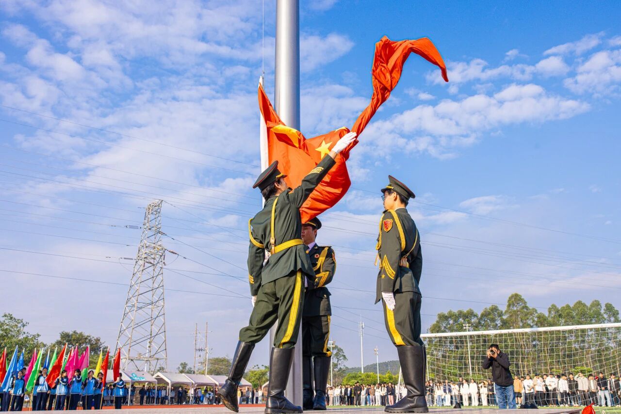 开幕式伊始,庄严的升旗仪式如期举行。国歌嘹亮,红旗飘扬,全场师生肃立注目,目光追随着缓缓升起的五星红旗,赤子之心与爱国情怀在此刻交融,凝聚成英华学子奋进向上的青春力量,为整场运动会奠定了庄重而激昂的基调。