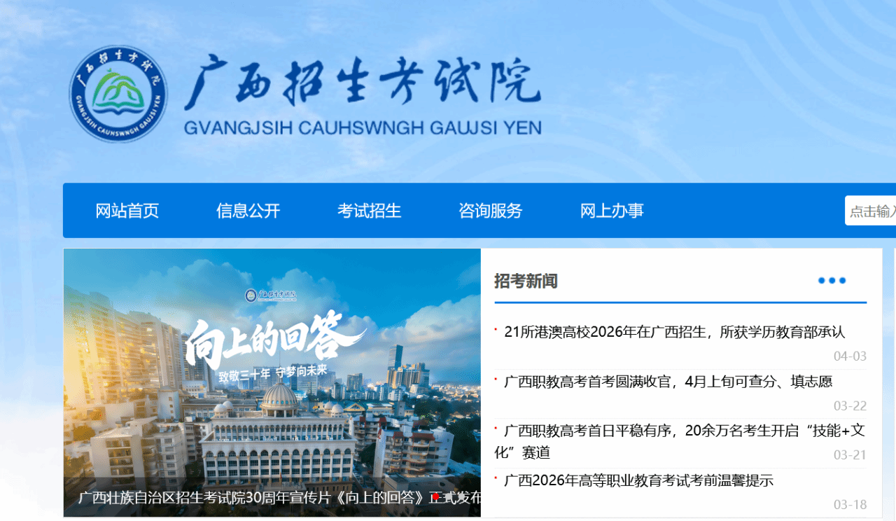 第一步:进入广西招生考试院(https://www.gxeea.cn/view/index.htm)