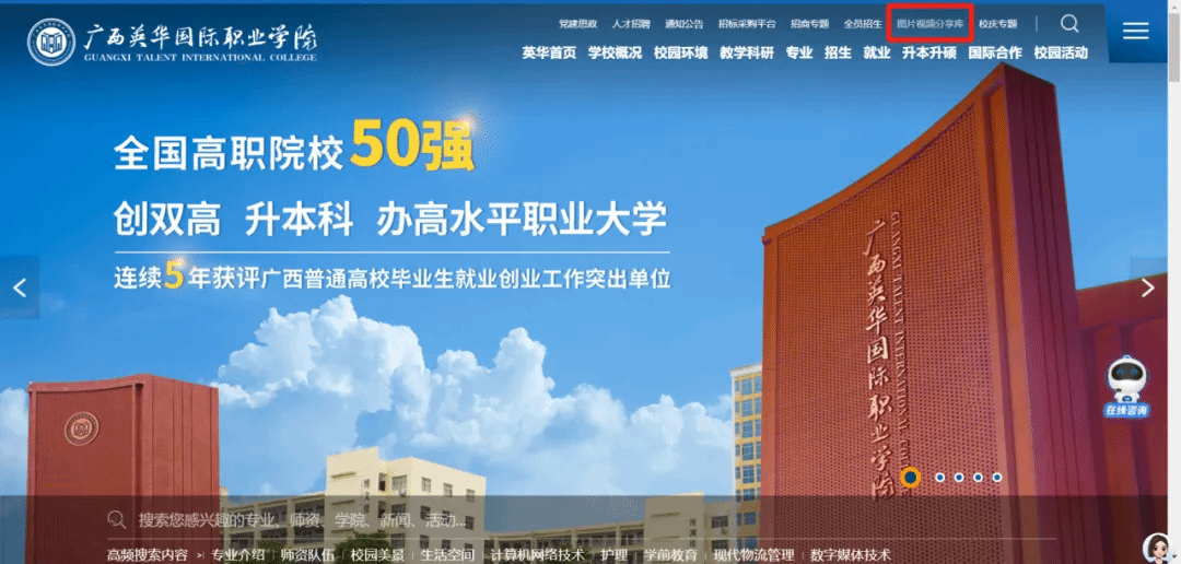 打开广西英华国际职业学院官网(https://www.gxtic.edu.cn/index.htm);