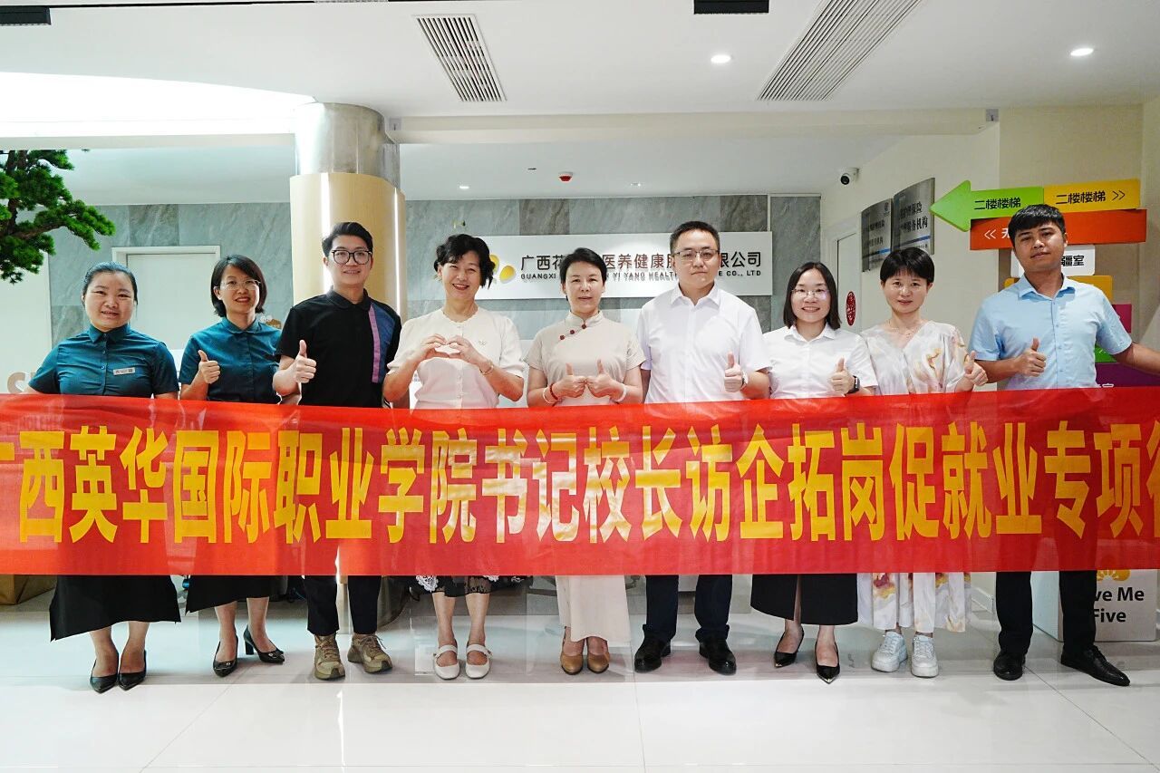 为贯彻落实国家关于高校毕业生就业工作的决策部署,全力促进护理专业毕业生高质量充分就业,近日,广西英华国际职业学院深入开展“访企拓岗促就业”专项行动,学校副校长宋博率队赴广西花沐澜医养健康服务有限公司,正式签订校企合作协议并举行“产教融合基地”授牌仪式,为护理学子的职业发展注入新动力。