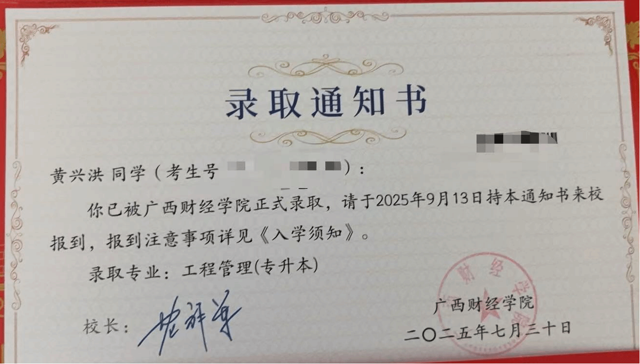 拿到广西财经学院录取通知书那天,黄兴洪坦言:“我没什么底子,就是比别人早动一点、多挤一点、更坚持一点。” 未来,他想把城轨专业的实操经验,与财经领域的理论知识结合,深耕城轨运营管理的交叉赛道。