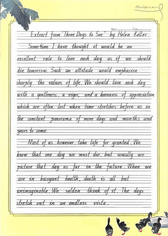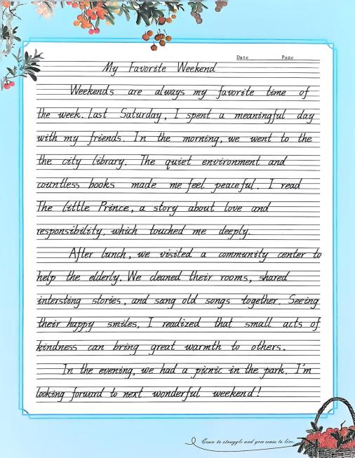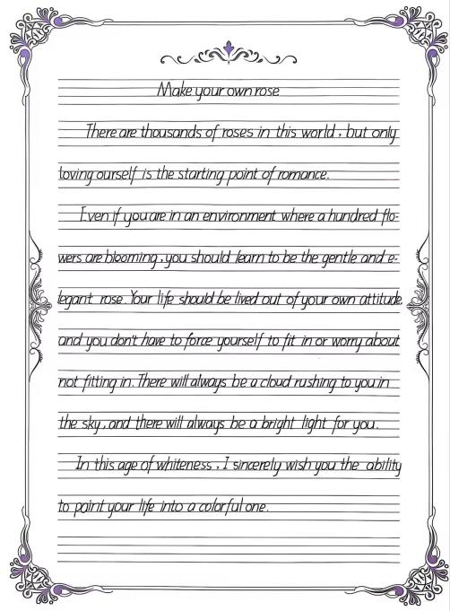 本次比赛得到了同学们的广泛关注和积极响应,吸引了全校172名英语爱好者踊跃参与,涌现出一批书写规范、美观的优秀作品。参赛选手们精心准备,完成了高质量的英文书写作品。内容涵盖经典英语文章、诗歌、散文及原创短文,充分展现了同学们的英语语言能力和艺术创造力。