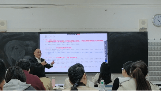 常务副院长梁淳一以“SC改革是什么、为何改、如何改”三问为轴,系统拆解SC教学改革的底层逻辑与落地路径。他犀利指出,传统课堂的“老三中心”——教师、教材、教室——本质是一场单向“撒米喂鸡”式的知识投喂,无视差异、不问需求;而SC改革高举“新三中心”——学生发展、学生学习、学习效果——把教学目标从“讲完”转为“学会”,帮助学生亲手搭建可迁移的认知模型,为即将到来的生活场景与职业赛道提前预装“操作系统”。