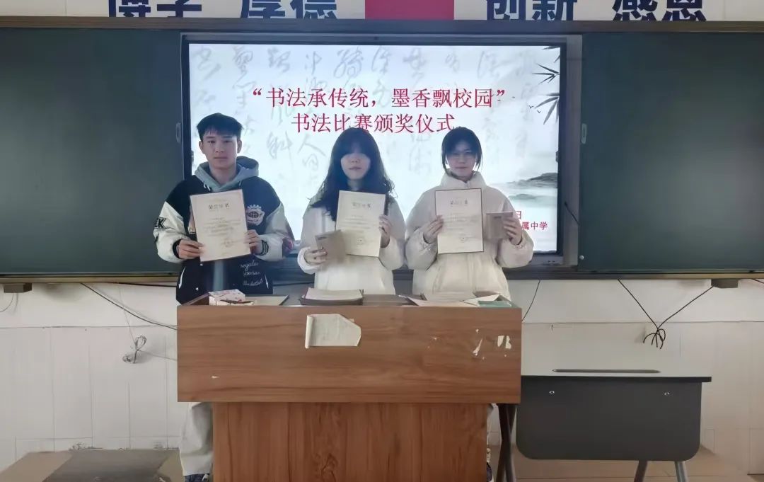“千磨万击还坚劲,任尔东西南北风。”颁奖仪式现场,同学们的脸上洋溢着自豪和喜悦。每一幅获奖作品,都是同学们辛勤付出的成果。这些作品将被精心布置于校园的每一个角落,成为一道亮丽的风景线。书法展览区,一幅幅作品如行云流水,引人入胜;征文展示墙,一段段文字深情讲述,触动心灵。我们诚邀全校师生及访客,一同漫步于这场文化盛宴,感受书法之美,聆听中国之声。